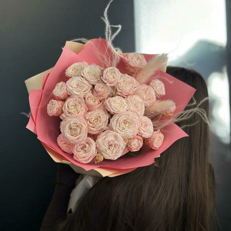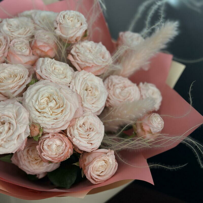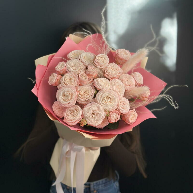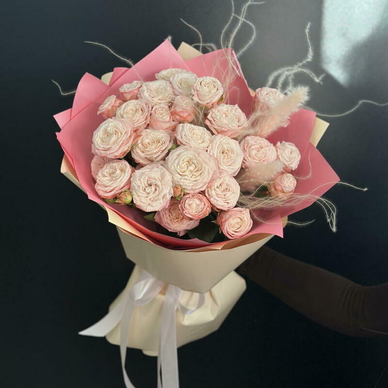 Букет из кустовых роз с сухоцветами, букет из кустовых роз с сухоцветами