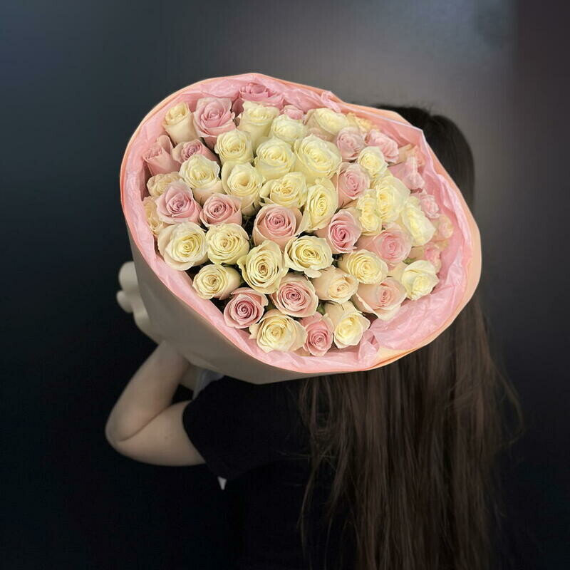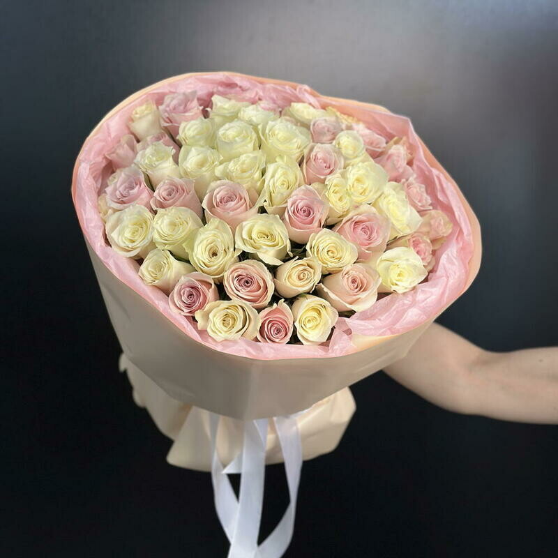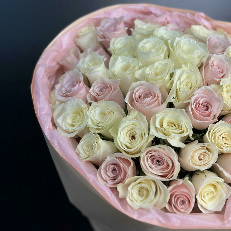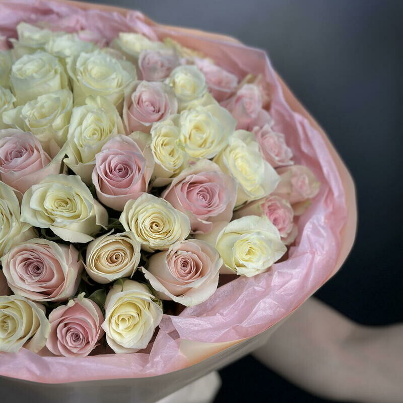 Букет нежных бело-розовых Кенийских роз 51
