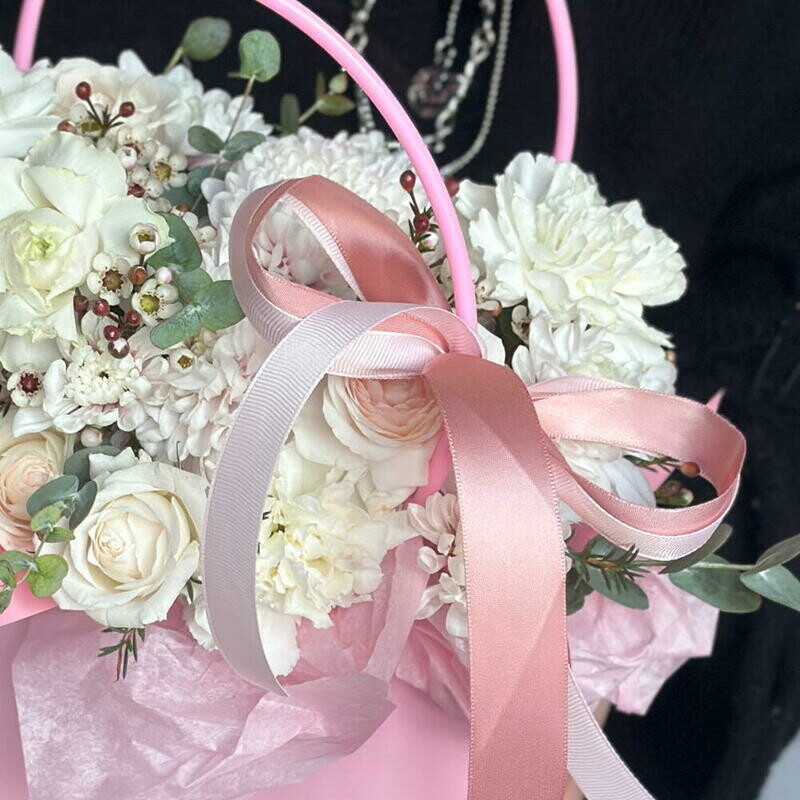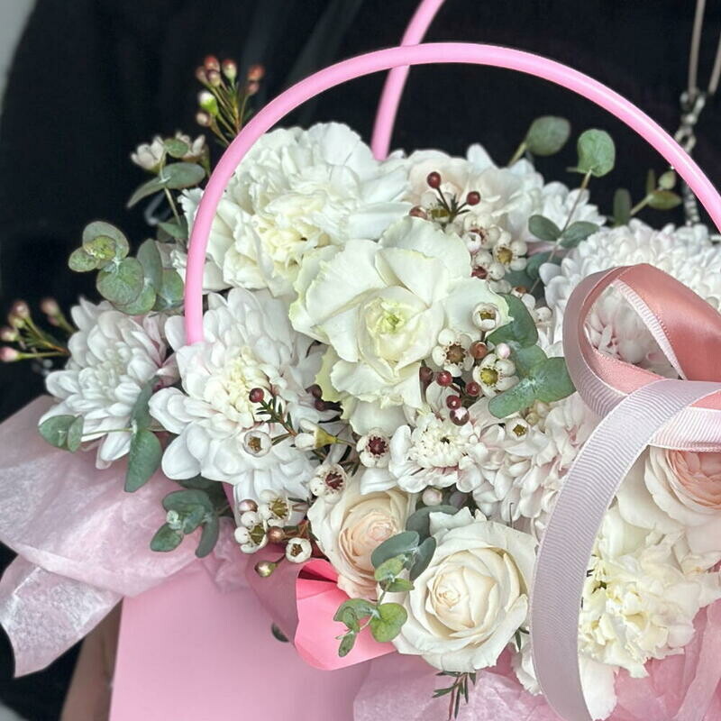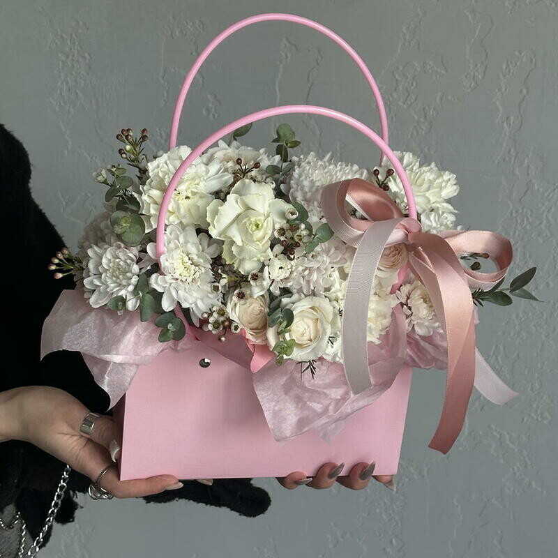 Белоснежная композиция в розовой сумочке