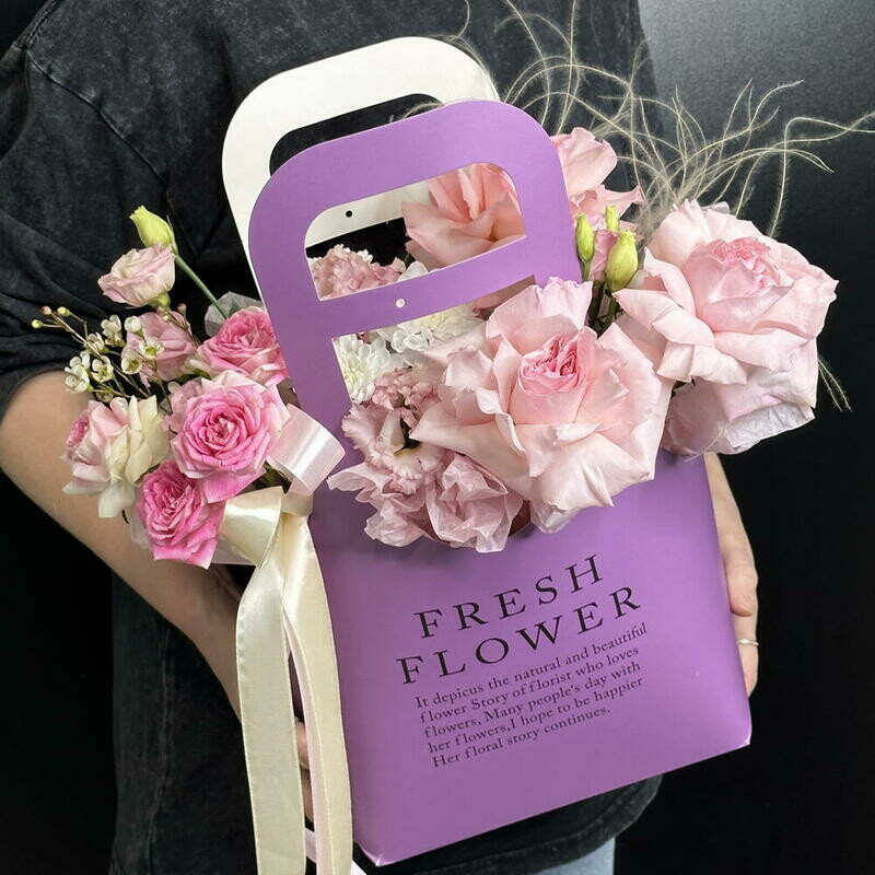 Удивить подругу, коллегу или сестру теперь проще простого. Цветы в сумочке — это тренд, который говорит о вашем безупречном вкусе. Стильная коробочка в виде сумочки, наполненная живыми цветами, смотрится невероятно нежно и дорого.