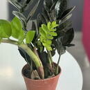 Замиокулькас (его часто называют «долларовое дерево») — вечнозелёное суккулентное растение из семейства Ароидные. Оно запоминается своей чёткой, графичной формой и крайней выносливостью. Особенности: Растёт медленно, новые побеги появляются редко. Цветёт (кремовым початком у основания) почти невидимо и только в зрелом возрасте. Все части замиокулькаса ядовиты — при работе с ним (особенно пересадке) нужно мыть руки или использовать перчатки. Отлично подходит для самых забывчивых владельцев и офисов с плохим освещением.