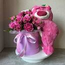 - Набор с кустовыми розами и мягким медведем