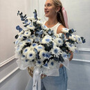 - Корзина с кустовой хризантемой и эвкалиптом