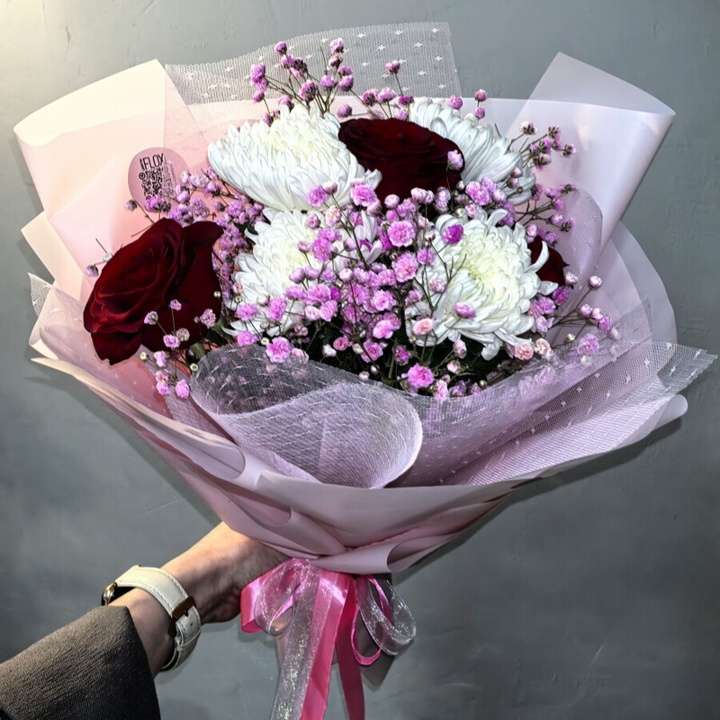 - Букет из роз и хризантемы