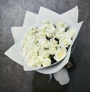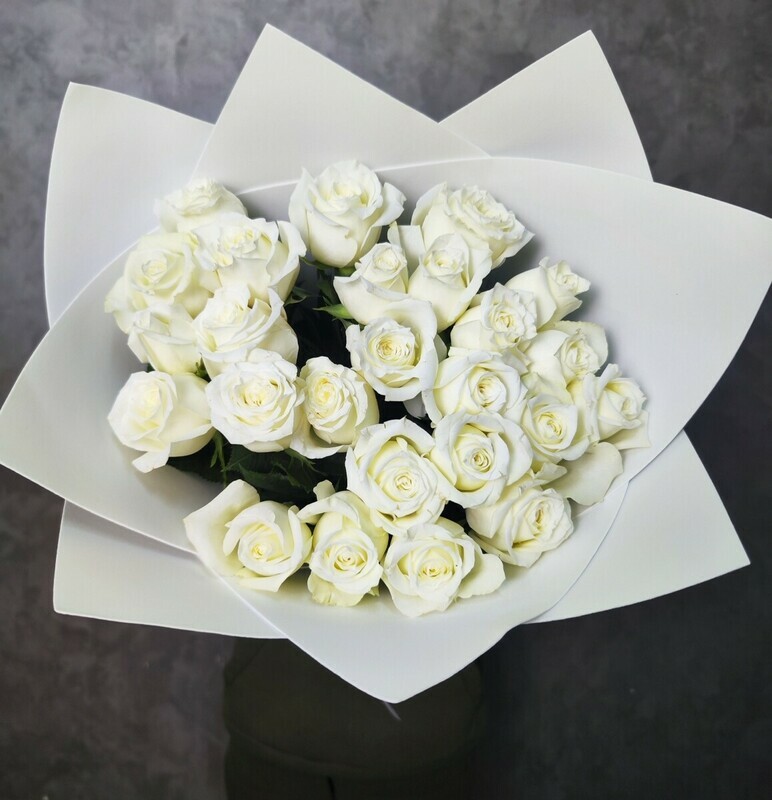 Букет состоит из 25 кенийских белых роз высотой 50 см, что придает ему объем и пышность. Розы - символ любви и красоты, они будут радовать получателя своей свежестью и ароматом.