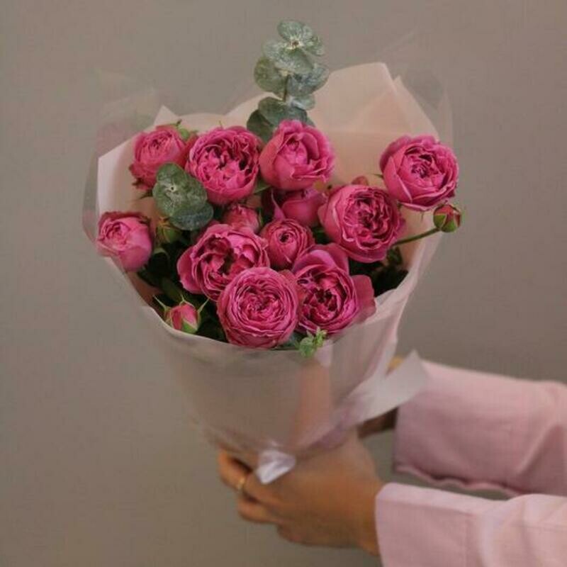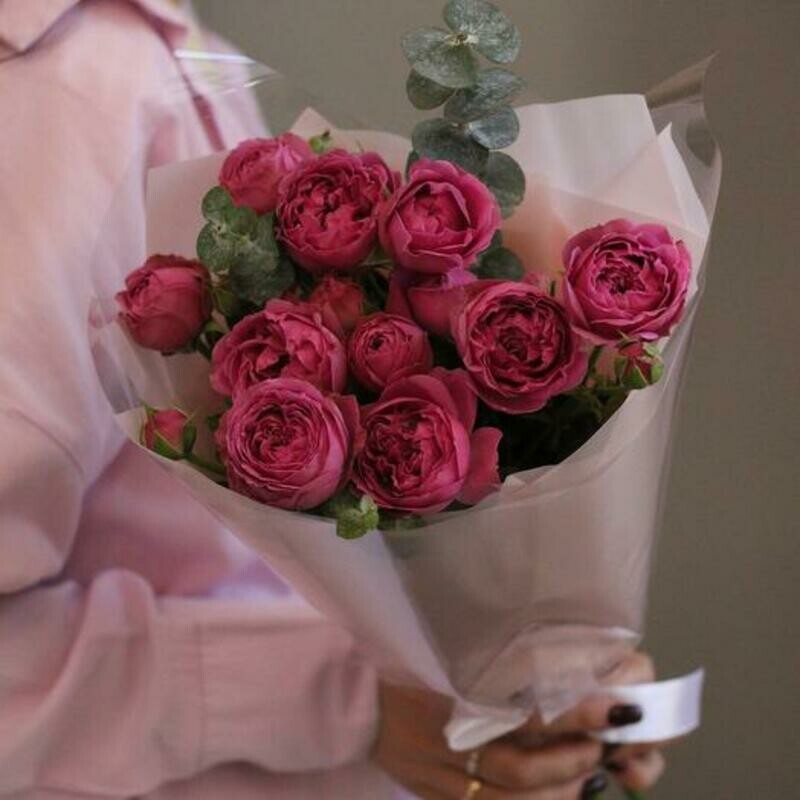 - Букет из 3 веток пионовидной розы с эвкалиптом