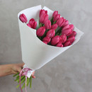 Букет из розовых тюльпанов 25 штук, фоамиран, лента