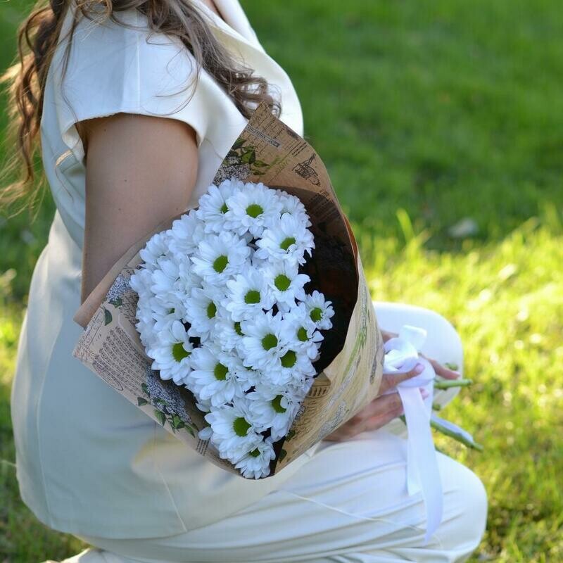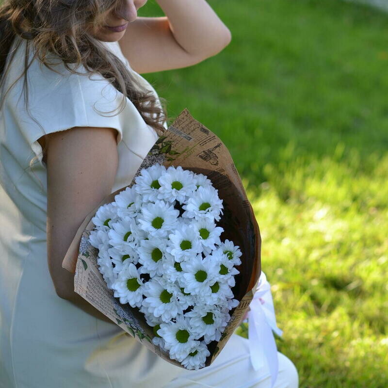 - Букет из кустовой белой хризантемы