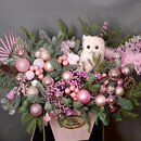 Новогодняя композиция из нобилиса,гипсофилы и новогоднего декора