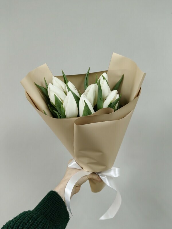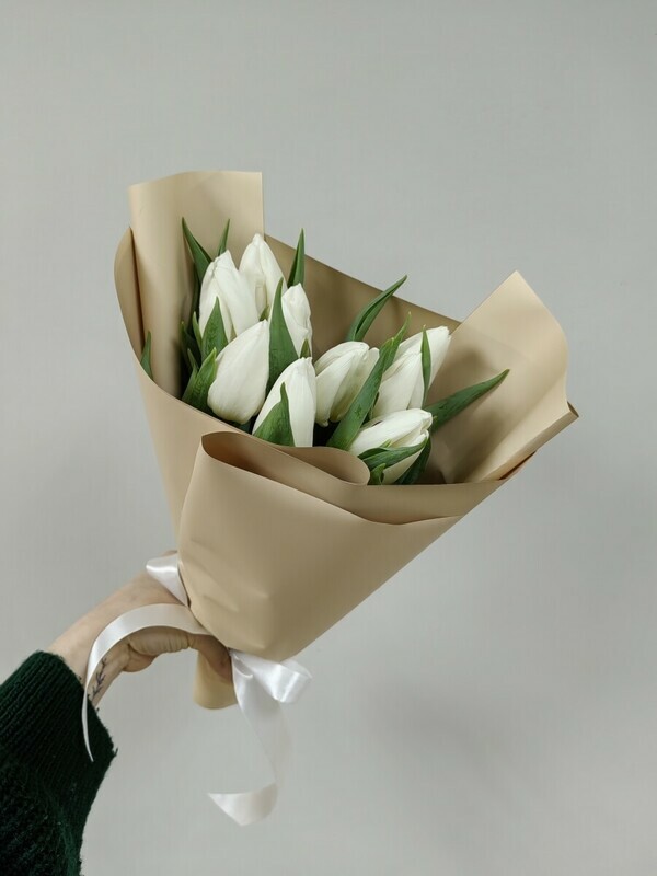Нежные и хрустящие 9 тюльпанов в оформлении
