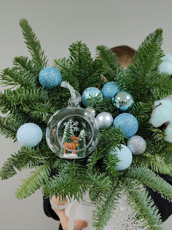 Коробка на стол к Рождеству или старому новому году с голубыми шариками