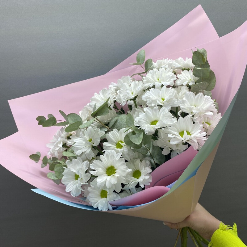 Букет хризантем с эвкалиптом