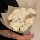 - Букет из 3 белых хризантем с хлопком и сухоцветами