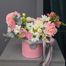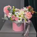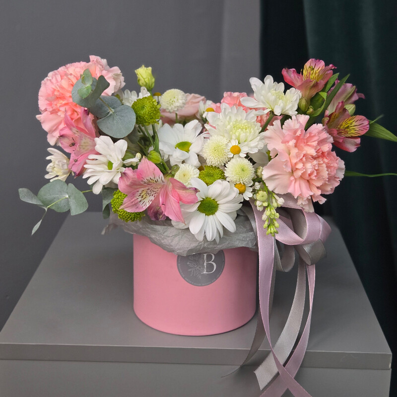 - Композиция из хризантем, альстромерий и сантини
