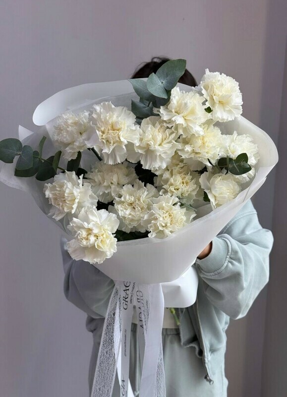 Букет с белыми диантусами , стандартный