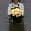 Букет из 27 кремовых роз (Россия) с лентой 60 см, букет из 27 кремовых роз (россия) с лентой 60 см