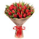 Букет из красных тюльпанов выглядит всегда эффектно и по-весеннему. Этот подарок универсален. Он может рассказать о пламенных чувствах, а может просто стать добрым знаком внимания. При чём дарить такие тюльпаны уместно как женщине, так и мужчине. И в качестве подарка ребёнку он будет чудесным.